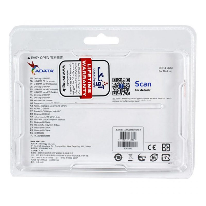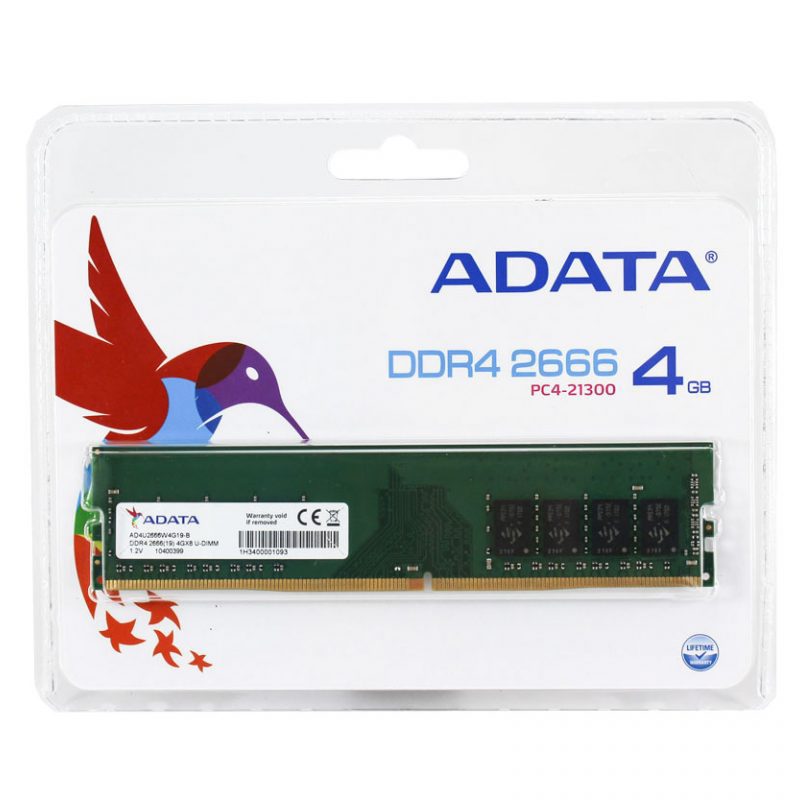 رم کامپیوتر DDR4 ای دیتا مدل PC4-21300 ظرفیت 4GB فرکانس 2666MHz تاخیر CL19 مدل (AD4U2666J4G19-B)
